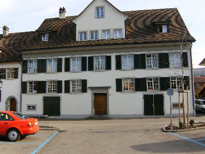 Die nüchterne, auf Symmetrie bedachte Fassade aus der Mitte des letzten Jahrhunderts lässt nicht vermuten, welche Vielfalt an geschichtlichen Zeugen und welcher Reichtum an kunstvollen Formen dahinter verborgen sind. Durch die nun abgeschlossene, von Architekt Gubler mit Sorgfalt geleitete Restaurierung konnte das Haus nicht nur neu belebt werden, sondern gleichzeitig sind auch unsere Kenntnisse von seiner Vergangenheit erweitert worden. Unter dicken Gipsschichten und hinter neueren Täfern kam an mehreren Stellen Riegelwerk zum Vorschein, dessen Bemalung in Ocker und Rot mit schwarzen Begleitlinien auf eine Entstehungszeit im 17. Jahrhundert schliessen lassen. Ein gutes Jahrhundert später muss das Haus um- und ausgebaut worden sein: Im Obergeschoss, einem stattlicheil piano nobile, befindet sich ein Festsaal, der sich mit den Grubenmann'schen Musiksälen der Bischofszeller Bürgerhäuser messen kann, wie sie nach dem Stadtbrand von 1743 errichtet wurden. Der Eingang zum Saal schliesst eine zweiflüglige Türe aus Nussbaumholz in schwungvollem Rahmen. Die Türblattrahmen sind massiv, ebenso die Aussenseite der Füllungen. Die Innenseite der Füllungen und auch des Türgewändes sind jedoch in Nussbaum fourniert. Damit ist eine für Steckborn typische Machweise aufgenommen, wie wir sie bei den Steckborner Schränken, aber auch an der 1767 datierten Kirchenkanzel wiederfinden. Neben der weitherum bekannten Steckborner Ofenwerkstätte der Meyer muss in der zweiten Hälfte des 18. Jahrhunderts auch das Möbelschreinereihandwerk (Wüger, Füllemann) in hohem Ansehen gestanden haben. Dem Meisterwerk der Türe entsprechen im Raum feingesprosste, maserierte Fenster. Der originale Kachelofen fehlt. Ueber dem mit Filet unterteilten Boden spannt sich eine reich profilierte, mit Bandelwerk unterteilte Stuckdecke. Ihr oval gerahmtes Mittelfeld schmückt das Allianzwappen Hanhart-Füllemann, was uns auf die Jahre um 1760/70 sowie den damaligen Besitzer und seine Gemahlin hinweist. Aus dieser Zeit stammen auch die Balluster des Treppenhauses und weitere, einfacher geschmückte Türen und Deckenspiegel. Der Beginn unseres Jahrhunderts war vor der Restaurierung im Festsaal durch eine neugotische Tapete und entsprechende Möbel vertreten und ist noch in der Eingangshalle durch Reliefs und gemalte Ornamente sichtbar geblieben. So erzählt uns heute das Grüne Haus dank der Mithilfe einiger feinfühliger Handwerker vieles aus seiner reichen Vergangenheit. Gleichzeitig erfüllt es aber auch neue Aufgaben, konnten doch drei zeitgemässe Wohnungen eingebaut werden. Mit diesem Ausbau hat die verständnisvolle und weitsichtige Besitzerin ein wertvolles Steckborner Haus erhalten und für die Zukunft gesichert. Unverständlich aber wieder gut zu machen ist der Verlust des auf der Nordseite gelegenen Gartens, der das gelungene Werk erst zur vollen Wirkung für alle Bewohner Steckborns bringen wird. J. Ganz